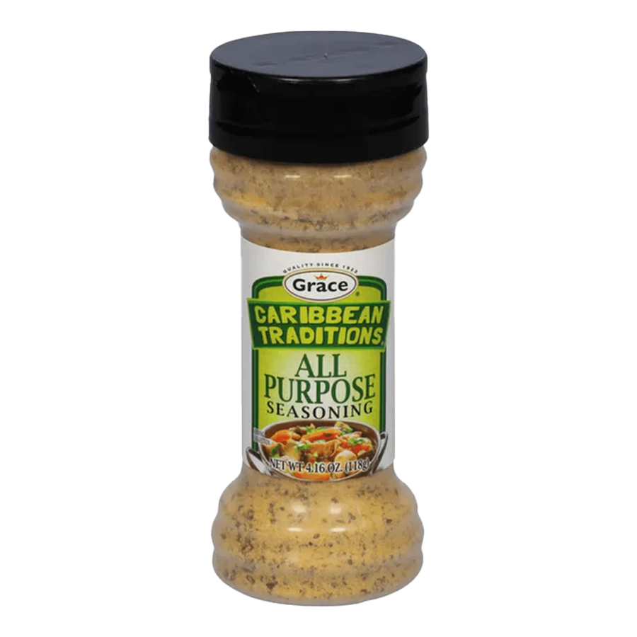 Ingredients: Salt, Sugar, Paprika, Black Pepper, Garlic, Onion, Cumin, Coriander, Ginger, Jamaican Pimento, Celery, Thyme, Oregano, Citric Acid (Preservative).